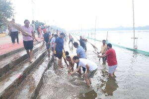 “छठ घाट पर गूंजा आस्था का स्वर: समिति और भक्तों ने मिलकर किया श्रमदान”